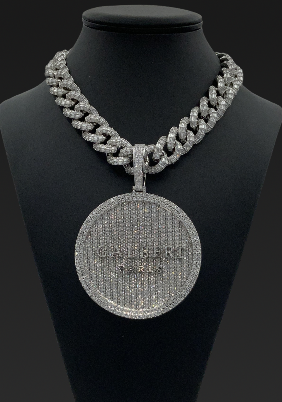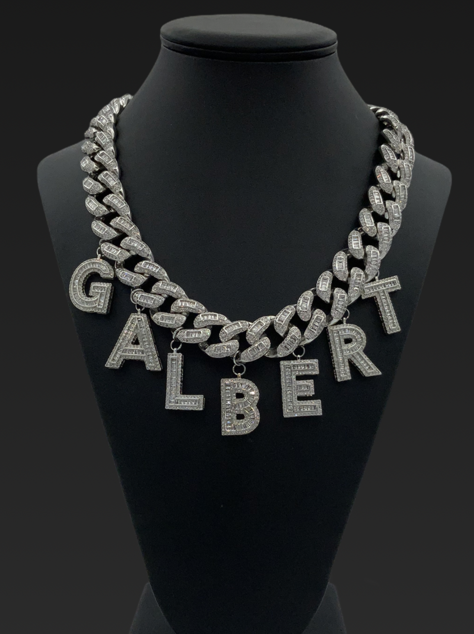 Galbert 22mm Baguette Cuban Link Chain made of 18Kt white gold